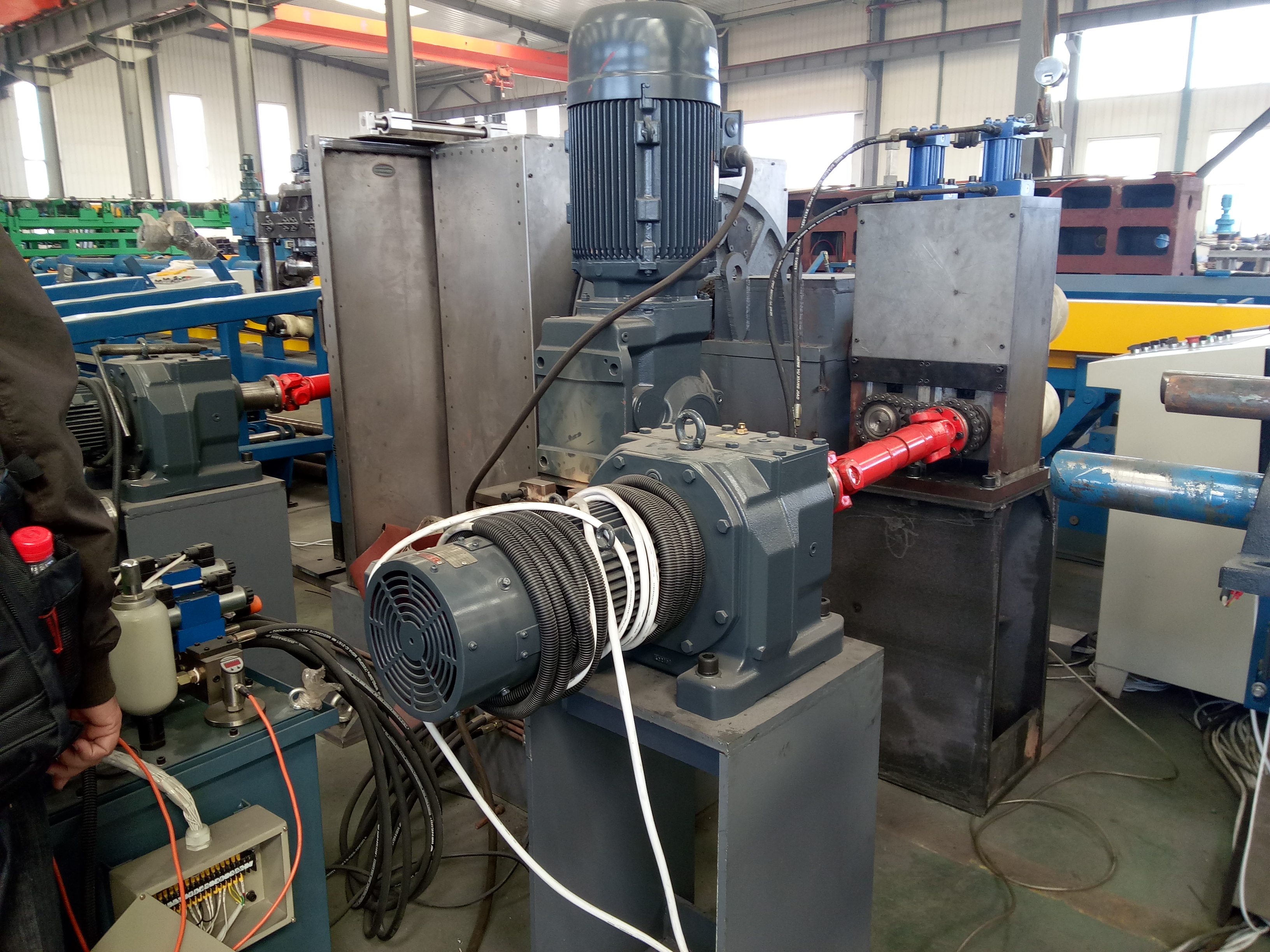 Introducere Mașina de lustruit centurile YM80SA este special concepută pentru barele cu cerințe ridicate de rugozitate a suprafeței. Principalii parametri și funcții tehnice sunt după cum urmează. Fusul acestei mașini este o structură cu miez gol. Există discuri de centură la capătul frontal. 2 seturi de traversări sunt așezate simetric. Unitatea principală pune 2 discuri de curea în mișcare prin lanț, angrenaj și angrenaj planetar. Discurile de curea sunt echipate cu curele abrazive. Discurile de curea fac revoluția acționată de unitatea principală. În același timp, curelele se rotesc cu viteză mare pentru a măcina oțelul rotund în medie. Piesa de prelucrat se mișcă în axa acționată de dispozitivul de prindere și de rolele de pe încărcător pentru a trece prin ax și a termina rectificarea. Cele 2 grupuri de curele rotative de mare viteză sunt controlate de 2 cilindri pentru a se deschide și, respectiv, pentru a se închide. Dispozitivul de poziționare de pe discul curelei reglează modificările de diametru și rezistența la măcinare pentru bare de diferite diametre. Fusul gol este echipat cu 1 set de mecanisme de sprijin reglabile. Mașina este practicabilă cu proces de procesare stabil, viteză mare, eficiență ridicată și o bună calitate a suprafeței.